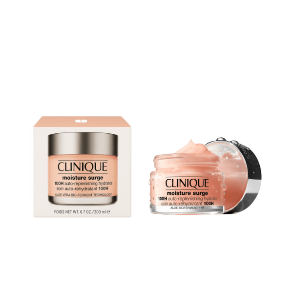 آبرسان ۱۰۰ ساعته کلینیک، با نام کامل (Clinique Moisture Surge™ 100H Auto-Replenishing Hydrator)، یک مرطوبکننده ژل-کرم فوقالعاده سبک، بدون روغن و فاقد عطر است. این فرمولاسیون پیشرفته با بهرهگیری از آلوئه بیوفِرمنت و هیالورونیک اسید، رطوبت را نه تنها به عمق پوست میرساند، بلکه با فعالسازی سیستم آبرسانی خودکار پوست، آن را تا ۱۰۰ ساعت متوالی حفظ میکند. این محصول سریعاً پوست را تسکین داده و ظاهری درخشان، پُر و کاملاً مرطوب به آن میبخشد.