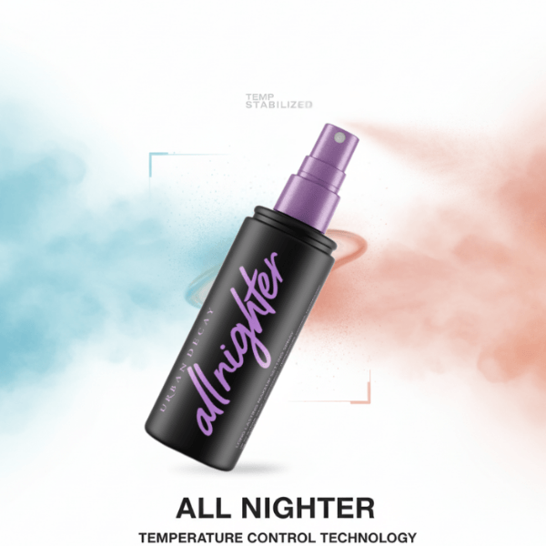 اسپری فیکس اربن دیکی آل نایتر (Urban Decay All Nighter)؛ تثبیت آرایش ۲۴ ساعته با فناوری کنترل دما برای جلوگیری از جابه‌جایی و محو شدن.