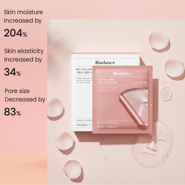 ماسک Bio-Collagen Real Deep Mask از برند کرهای BIODANCE، یک نوآوری در ماسکهای صورت است. این ماسک از نوع هیدروژل کلاژن بوده و حاوی فیلتر تخمیر گالاکتومایسس، هیالورونیک اسید با وزن مولکولی پایین و کلاژن با وزن مولکولی فوقالعاده پایین است. این ماسک را میتوان به صورت سنتی یا به عنوان ماسک خواب شبانه استفاده کرد و زمانی که پوست تمام ترکیبات فعال را جذب کند، ماسک از حالت شیری کدر به هیدروژل شفاف تبدیل میشود.